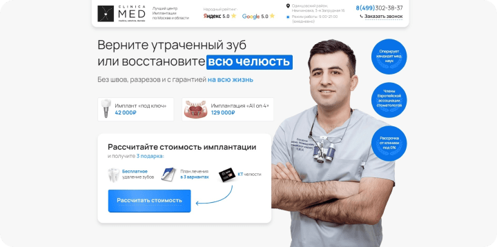 2 657 заявок для стоматологии из Москвы. Имплантация и протезирование