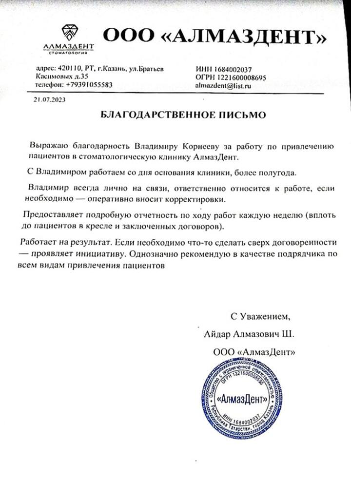 Для рекламы мы использовали уже готовые наработки с брекетов. Кроме того — в Татарстане я работаю еще с несколькими клиниками, хорошо знаю рынок